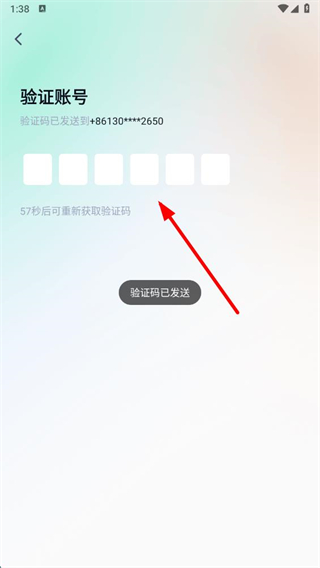 3、在验证账号页面输入收到的验证码,完成账号验证。