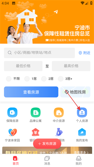 1、打开宁波租房,点击个人房源,可进入个人房源板块。