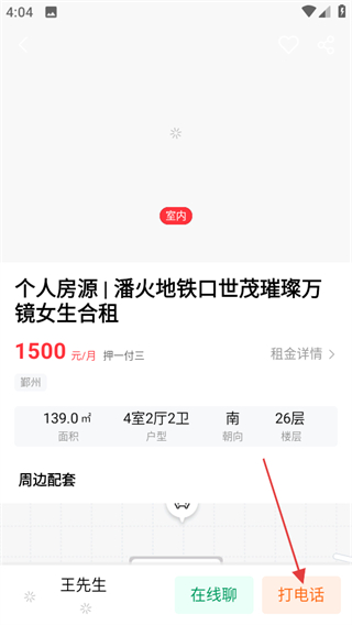3、在房源详情页,点击打电话联系,进一步了解房源,满意了就可以租下。