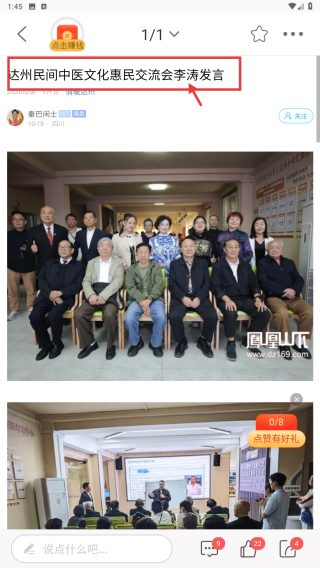3、在资讯列表里,找到达州民间中医文化惠民交流会李涛发言资讯条目,点击进入资讯详情页。