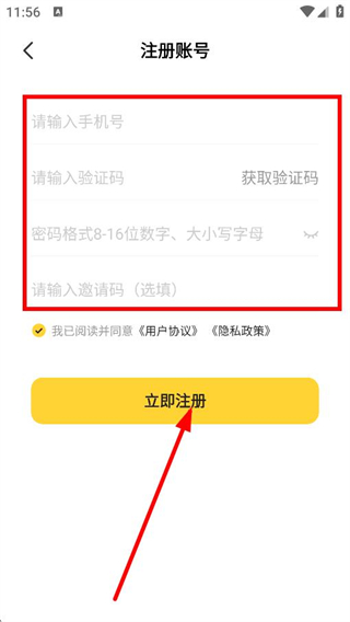 4、在注册账号页面,输入手机号、验证码、密码,点击立即注册,完成账号注册。