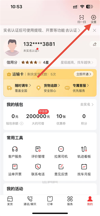 1、在运满满货主版app界面点击我的选项,进入个人页面。