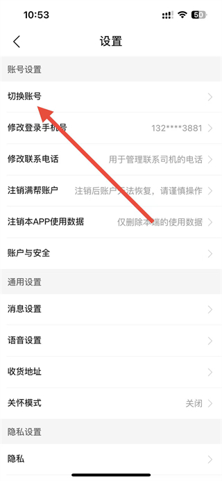 3、在设置页面点击切换账号选项,进入切换账号登录页面。