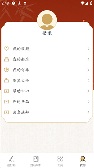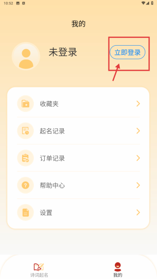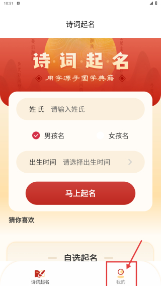 1、打开诗词起名应用,点击底部我的选项,进入个人中心页面。