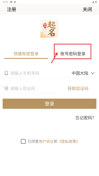 3、在登录方式选择界面,点击账号密码登录选项,进入账号密码登录页面。