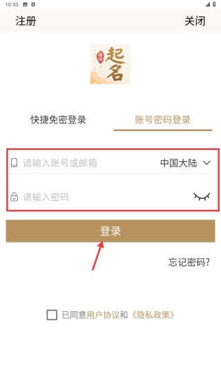 4、在账号密码登录页面,输入账号或邮箱、密码后点击登录按钮,完成账号登录操作。
