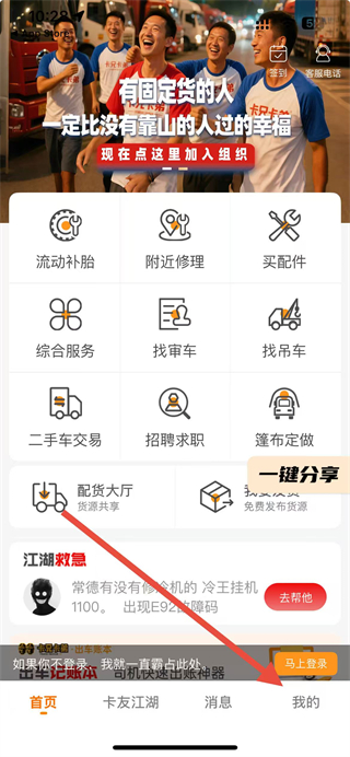 卡兄卡弟最新版本是深耕物流领域的综合服务平台,以无中间商模式为核心,为千万物流人打造高效工作助手,界面清晰,操作便捷,行车保障周全,附近补胎、加油、维修等服务一键查询,配件采购、车辆审车等需求快速响应。更有实时订单追踪、工作动态刷新、卡友交流社区等功能,让接单、行车、运营全程无忧。