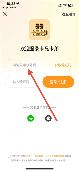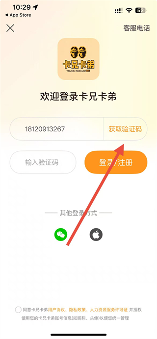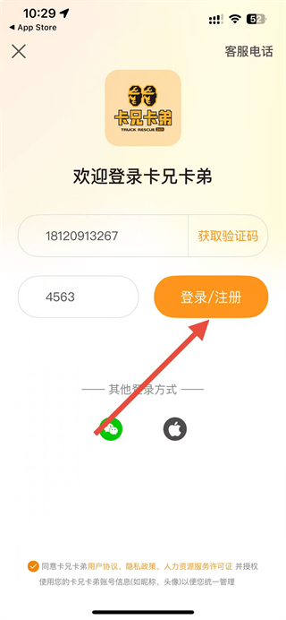 4、勾选同意相关协议后点击登录注册按钮,即可完成卡兄卡弟app的注册流程。