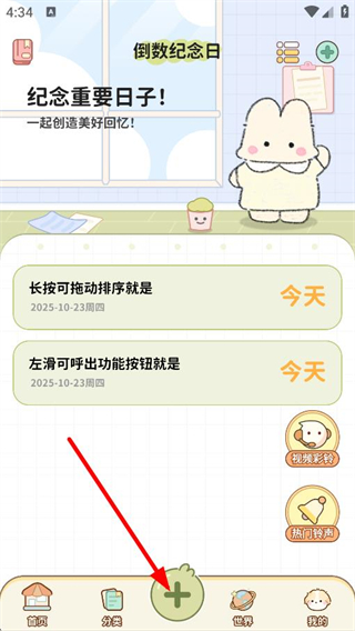 2、在APP首页,点击底部加号图标,进入重要日子类型选择页面。
