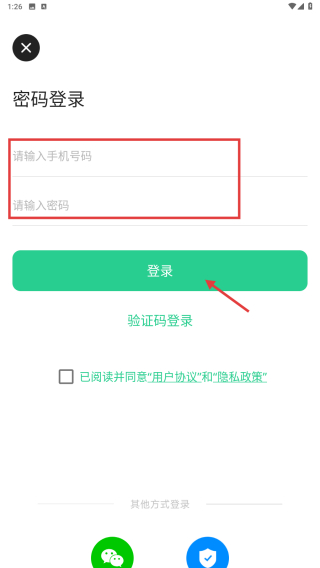 4、在手机号密码登录页面,输入手机号和密码后点击登录按钮,完成账号登录操作。