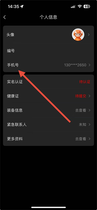 2、在个人信息页面点击手机号选项,进入UU安全中心页面。