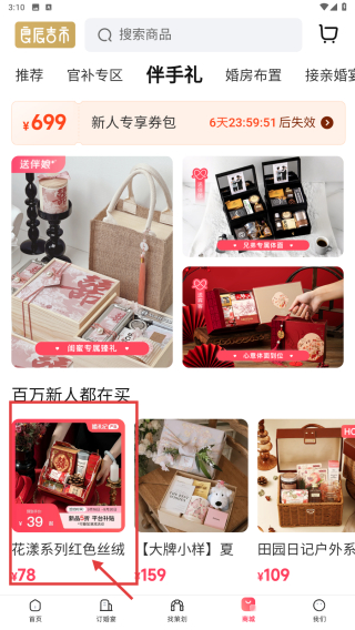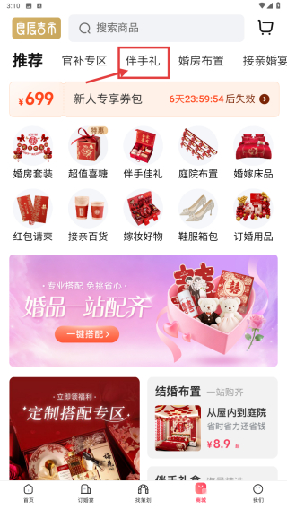 2、在商城页面,点击伴手礼分类,浏览婚庆伴手礼商品列表。