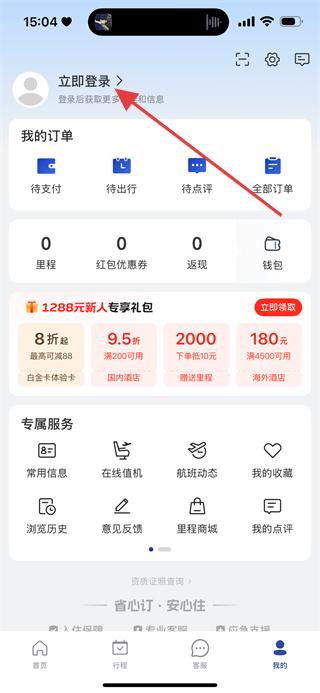 2、在个人中心页面,点击立即登录,进入登录页面。