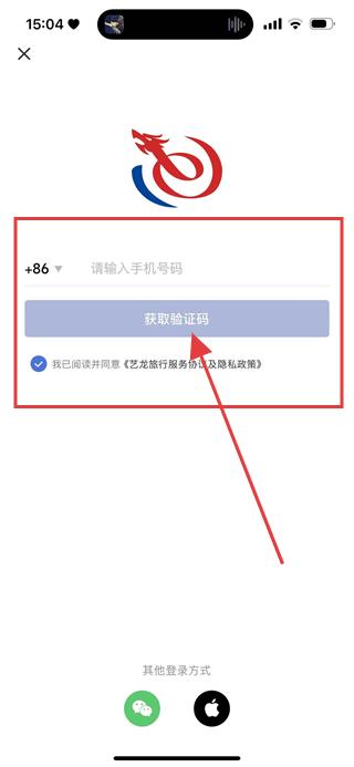 3、在登录页面,输入号码,同意协议后,点击获取验证码。