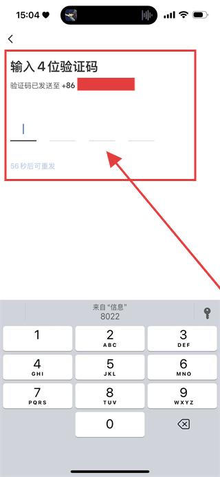 4、在验证码输入页面,输入收到的验证码,即可完成账号登录。