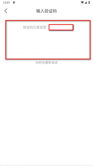 4、在输入验证码页面,输入收到的验证码,完成账号登录。