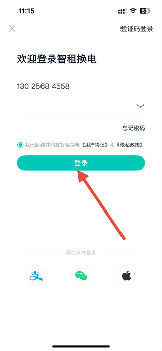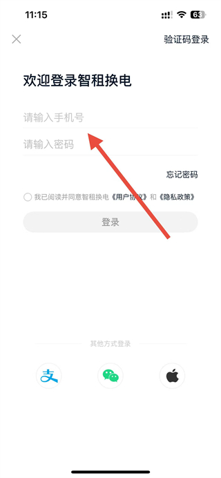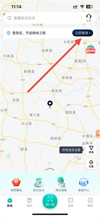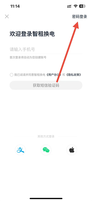 1、在智租换电app首页点击立即登录按钮,进入登录页面。