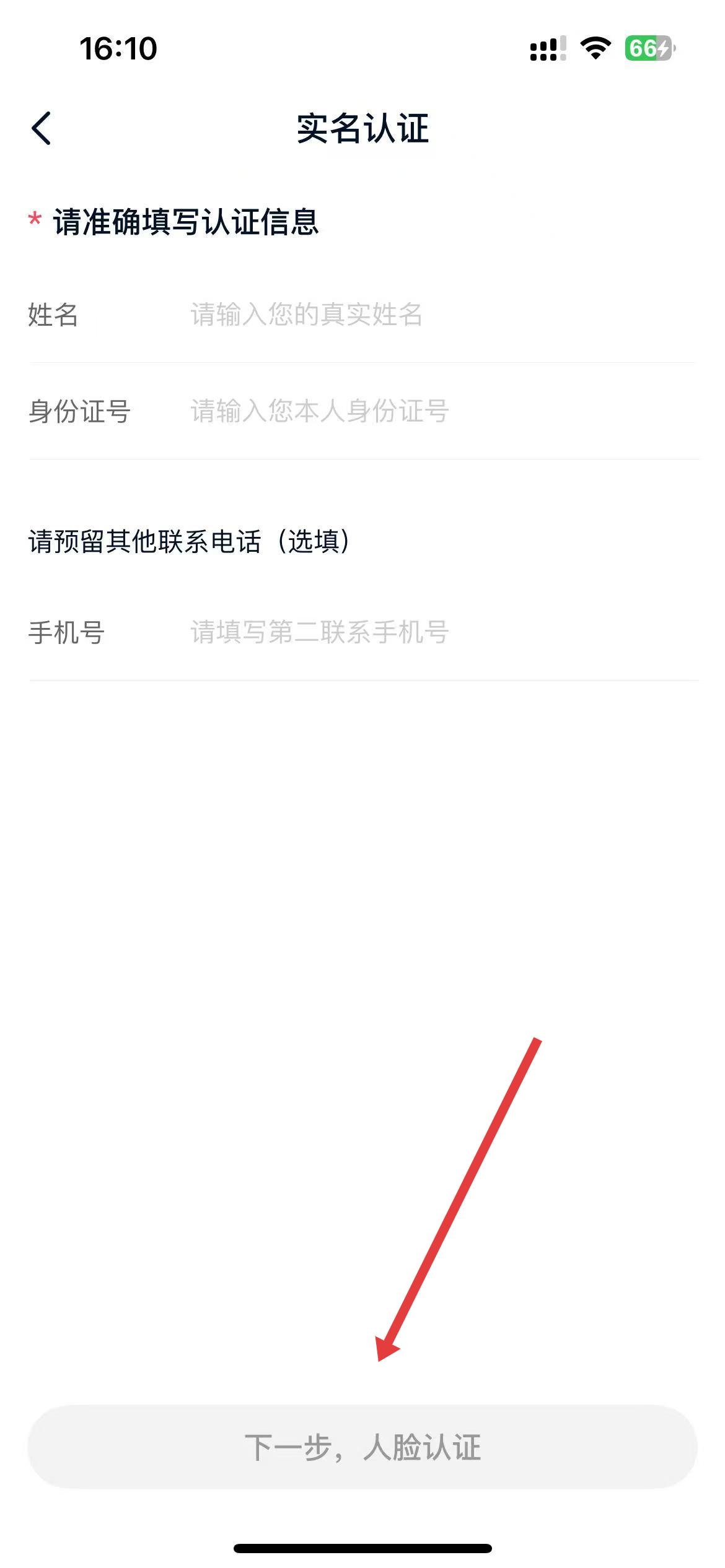 5、准确填写姓名、身份证号等信息后,点击下一步,人脸认证,按提示完成人脸认证,即可完成实名认证。