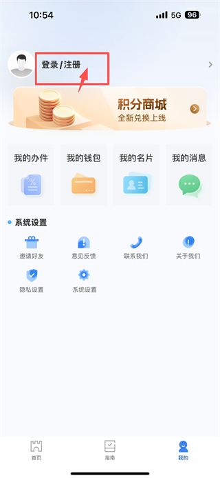 2、在个人中心页面,点击登录/注册选项,进入登录方式选择界面。