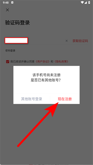 4、在提示的弹窗中,该手机号尚未注册,点击现在注册。
