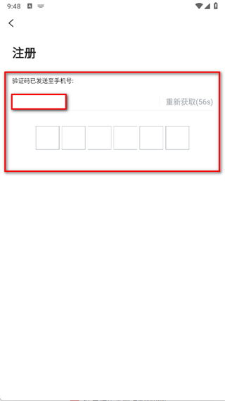 5、在注册页面,输入收到的验证码,完成账号注册。