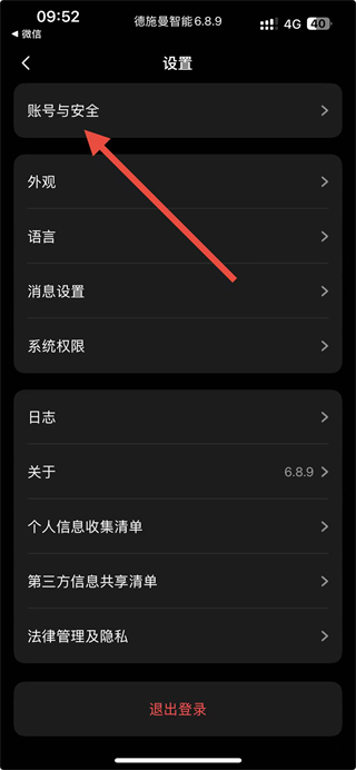 2、在设置页面点击账号与安全选项,进入账号与安全页面。