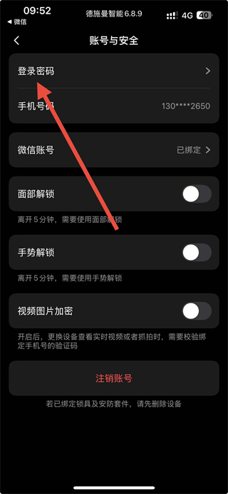 3、在账号与安全页面点击登录密码选项,进入修改登录密码页面。