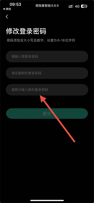4、在修改登录密码页面输入原登录密码和新登录密码,点击提交按钮,完成密码更换操作。