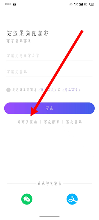 2、在登录页面,点击新用户注册,进入注册账号界面。