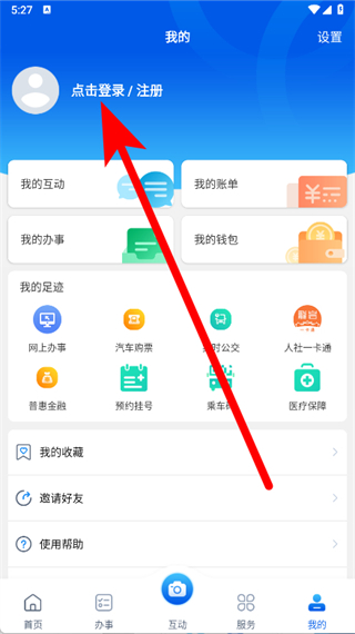 2、在个人中心页面,点击登录注册区域,进入登录注册界面。