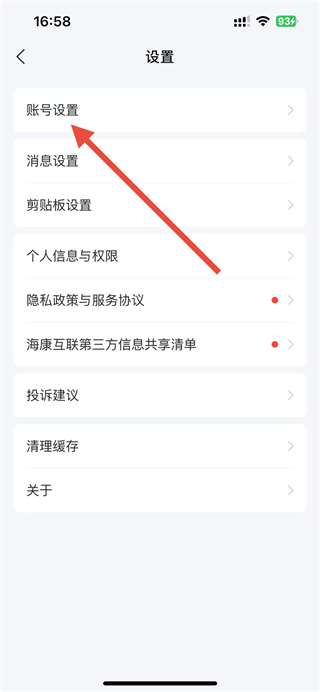 2、在设置页面点击账号设置选项,进入账号设置页面。