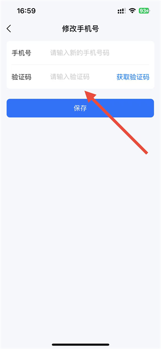4、在修改手机号页面输入新手机号,获取验证码,点击保存按钮,即可完成手机号修改操作。