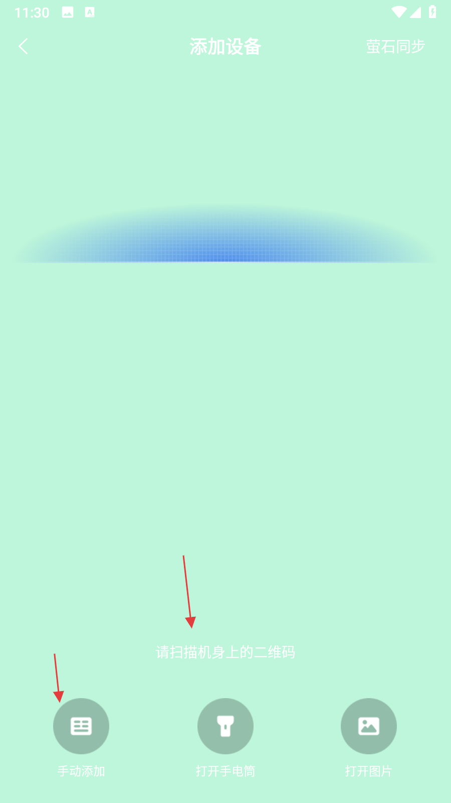 3、进入扫码添加页面后,扫描机身上的二维码即可,若需手动添加,点击左下角手动添加按钮。