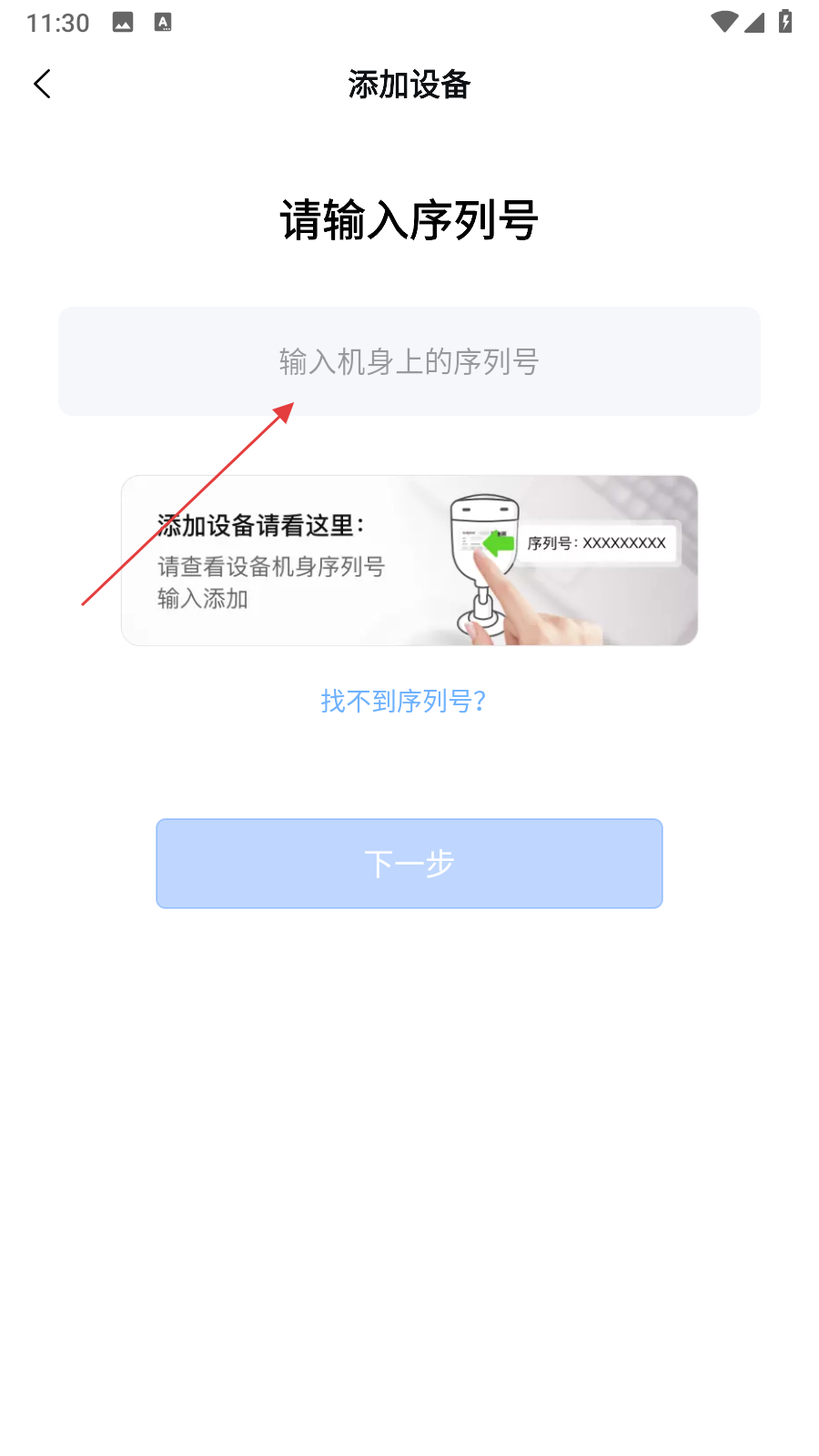 4、在手动添加的请输入序列号页面,输入设备机身上的序列号,按照提示连接即可。