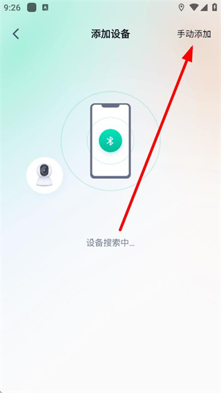 2、在添加设备页面,点击右上角手动添加,进入连网方式选择页面。
