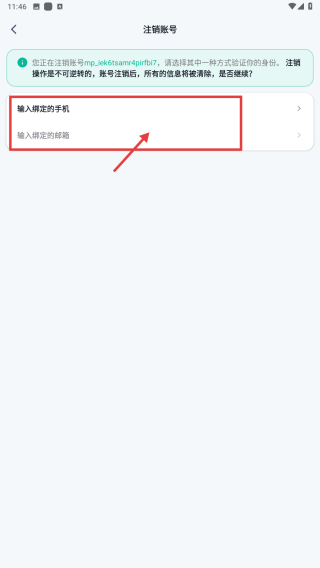 4、在注销账号页面,输入绑定的手机号和邮箱后,提交账号注销申请。