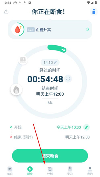 1、打开断食追踪APP,点击导航栏中的计划。