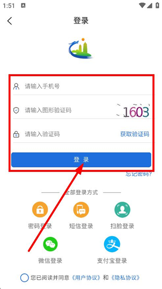 4、输入手机号、图形验证码,输入验证码后,点击登录,完成账号登录。