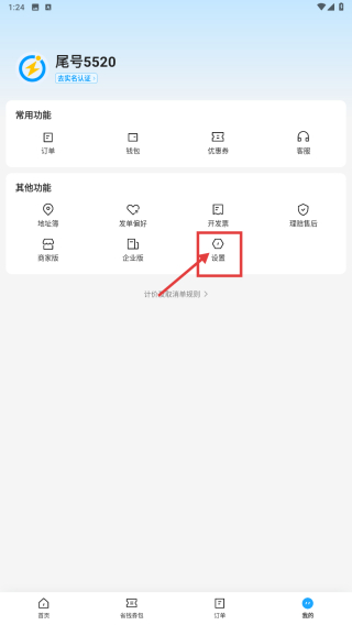 2、在个人中心页面,点击设置选项,进入设置页面。