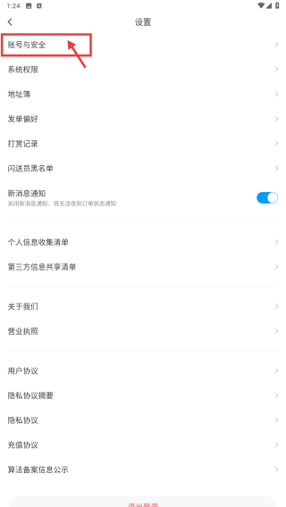 3、在设置页面,点击账号与安全选项,进入账号与安全页面。