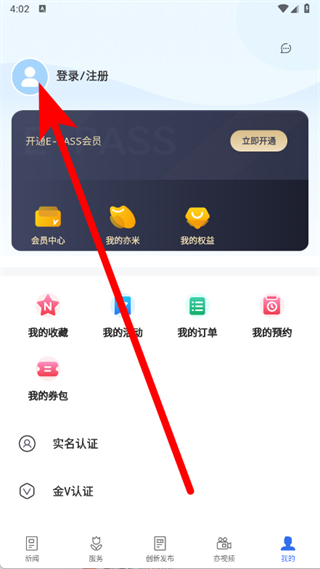 2、在个人中心页面,点击登录注册区域,进入手机快捷登录界面。