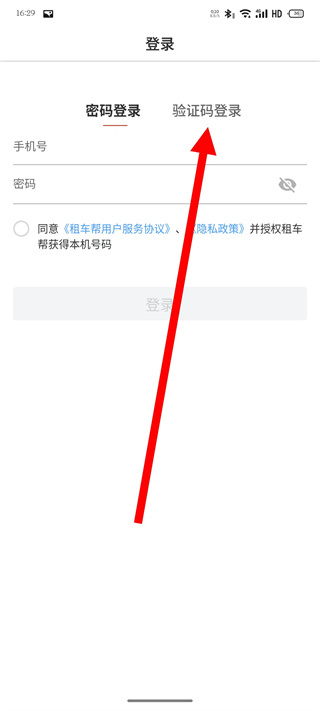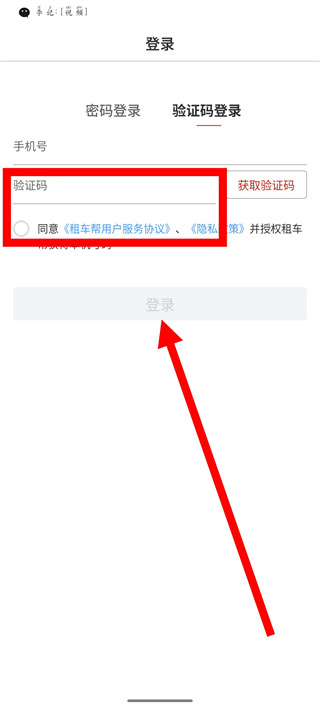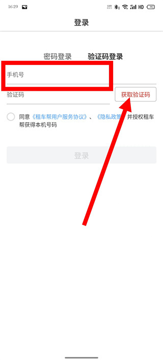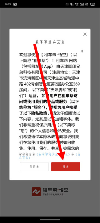 1、打开租车帮悟空,在弹出的弹窗中点击同意,进入登录界面。