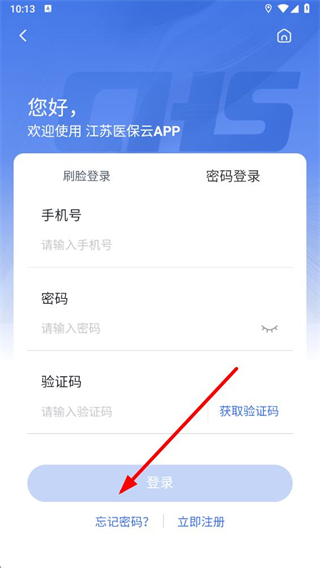 3、在密码登录页面点击忘记密码选项,进入忘记密码页面。