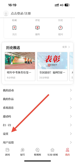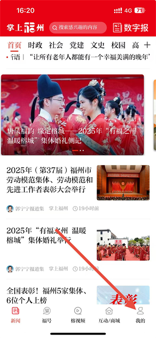 1、在掌上福州app首页点击我的选项,进入个人页面。