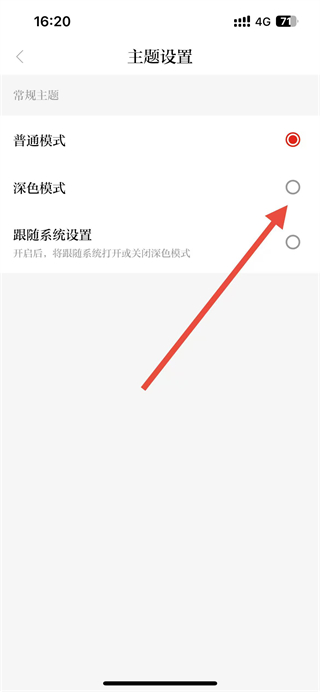 4、在主题设置页面选择深色模式,即可完成深色主题设置操作。