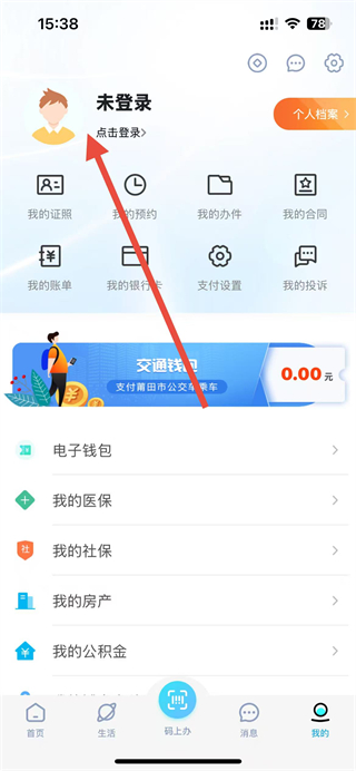 1、在莆田惠民宝app首页点击我的选项,进入个人页面。