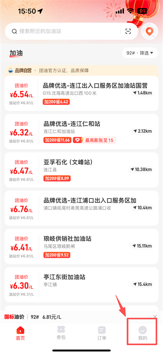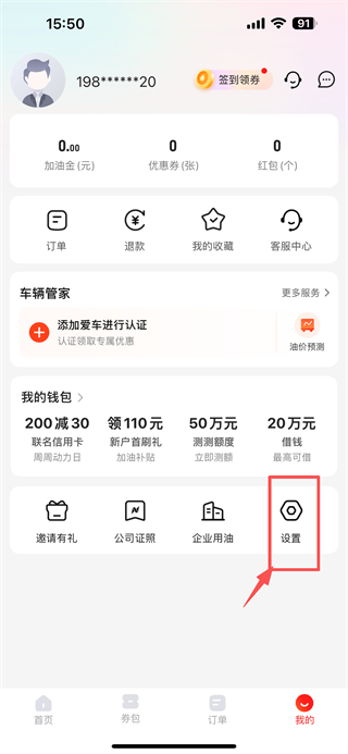 1、打开加油服务类应用,点击底部我的选项,进入个人中心页面。