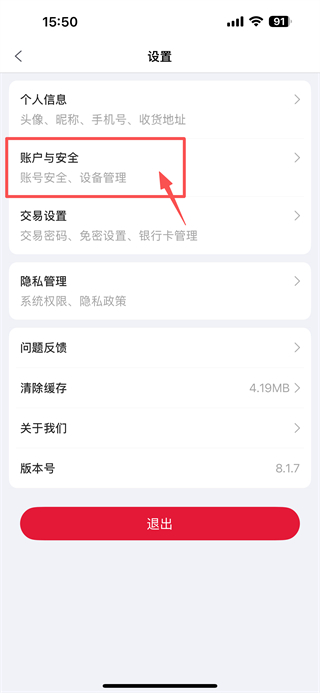 3、在设置页面,点击账户与安全选项,进入账户与安全页面。