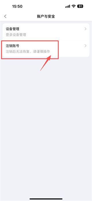 4、在账户与安全页面,点击注销账号选项,发起账号注销操作。