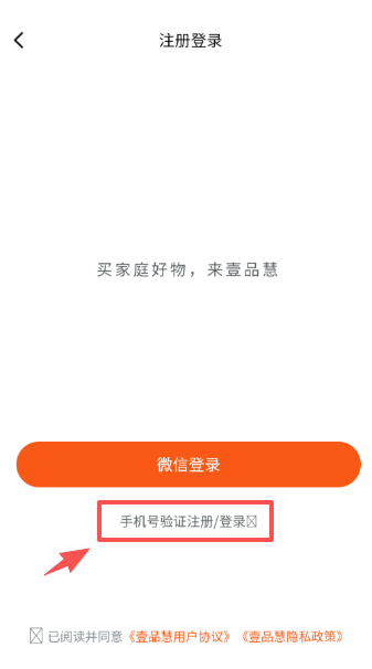 3、在注册登录页面,点击手机号验证注册/登录选项,进入手机号登录页面。